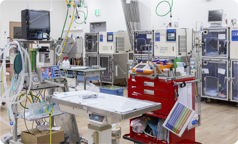 当院は、365日24時間体制で入院管理を行っています。獣医師、愛玩動物看護師が動物の状態や治療経過を常に情報共有し管理しています。急変や合併症の発症を防ぐモニタリングと治療により、皆様の大切なご家族を安心して入院させることができます。
